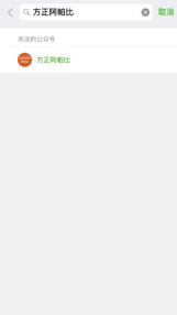 (1)在微信公众号中搜索“方正阿帕比”或扫描下方二维码并关注公众号。